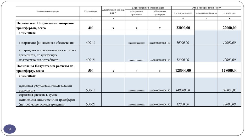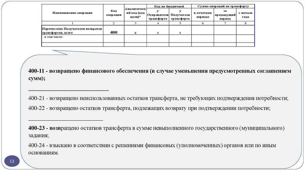 трансферте (ф. 0510453), с указанием в кодовой зоне символа