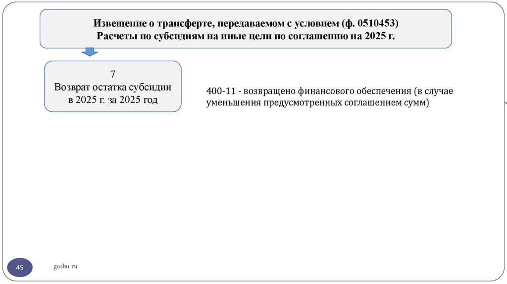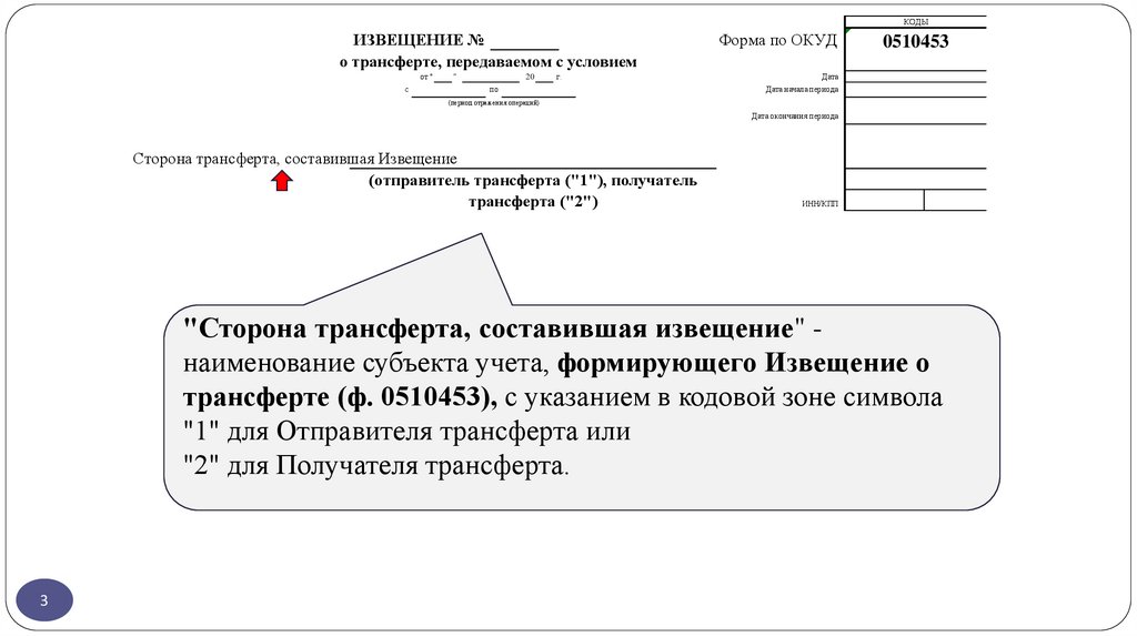 1. Порядок оформления и применения в 2025 году Извещения о трансферте, передаваемом с условием (ф.0510453)