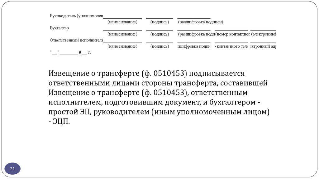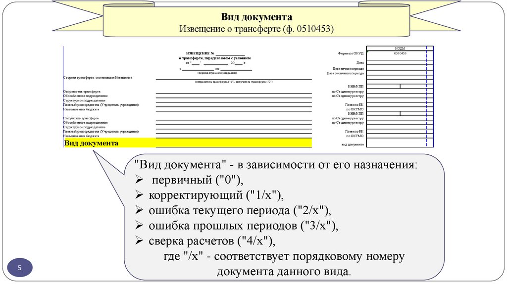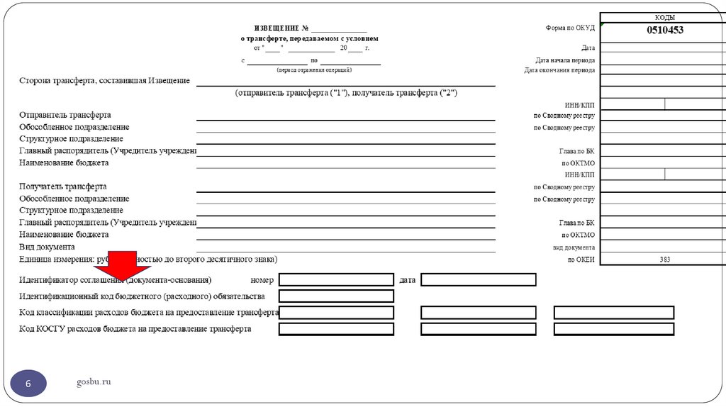 Вид документаИзвещение о трансферте (ф. 0510453)