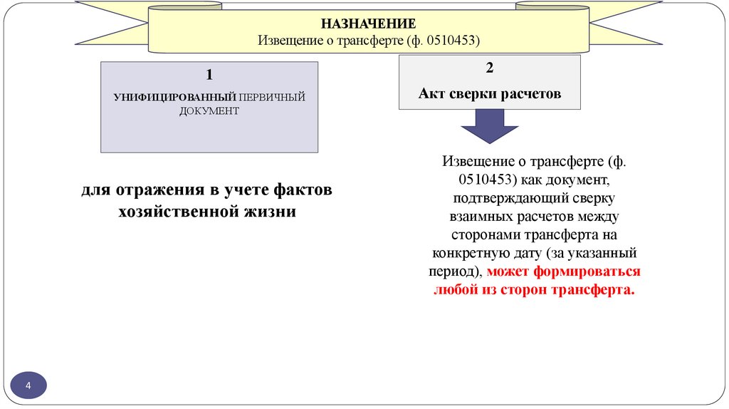 НАЗНАЧЕНИЕИзвещение о трансферте (ф. 0510453)