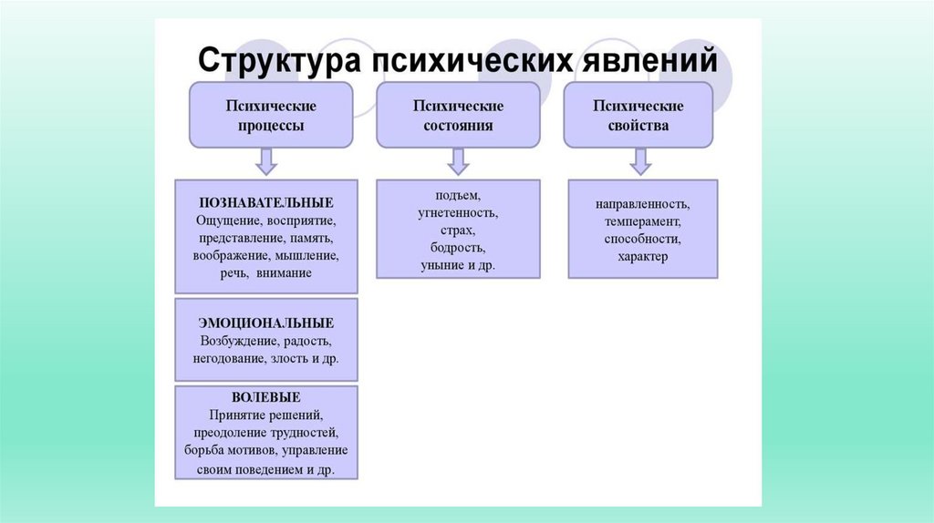– познавательные: связаны с восприятием и переработкой информации(ощущение, восприятие, представление, память, воображение,