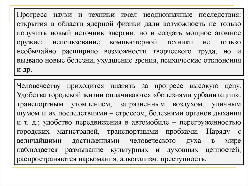 автоматизация производства, развитие средств массовой коммуникации, сферы услуг,