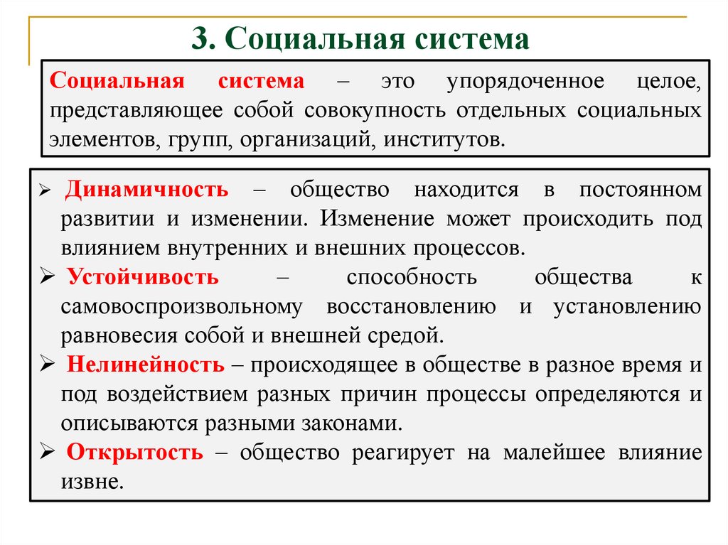 3. Социальная системаСоциальная система – это упорядоченное целое,