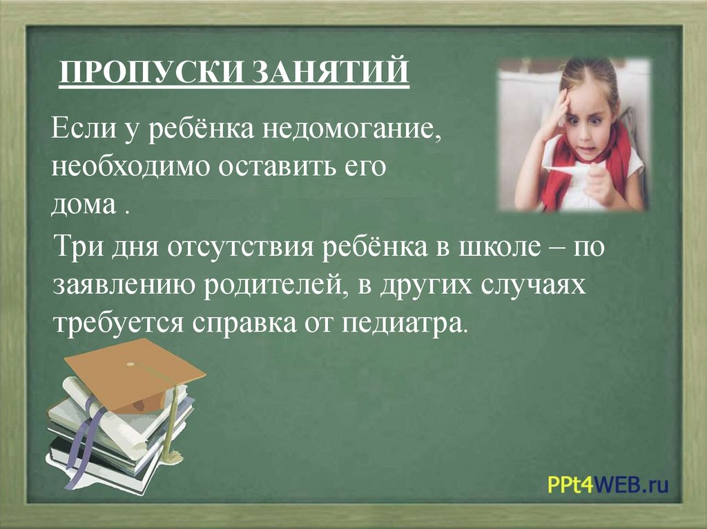 ПРОПУСКИ ЗАНЯТИЙЕсли у ребёнка недомогание,