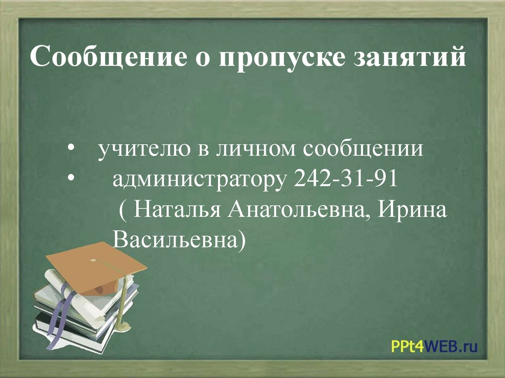 Сообщение о пропуске занятий• учителю в личном сообщении
