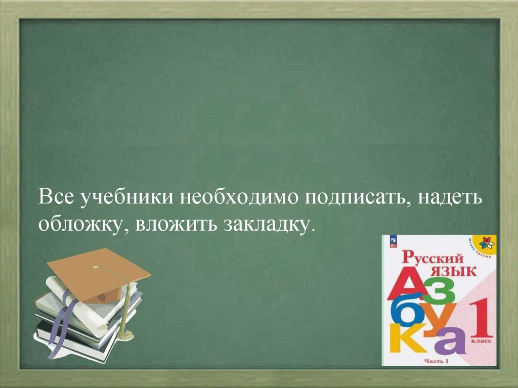 Все учебники необходимо подписать, надетьобложку, вложить закладку.