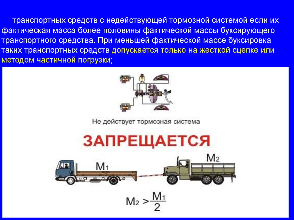транспортных средств с недействующей тормозной системой если ихфактическая масса более половины фактической массы буксирующего