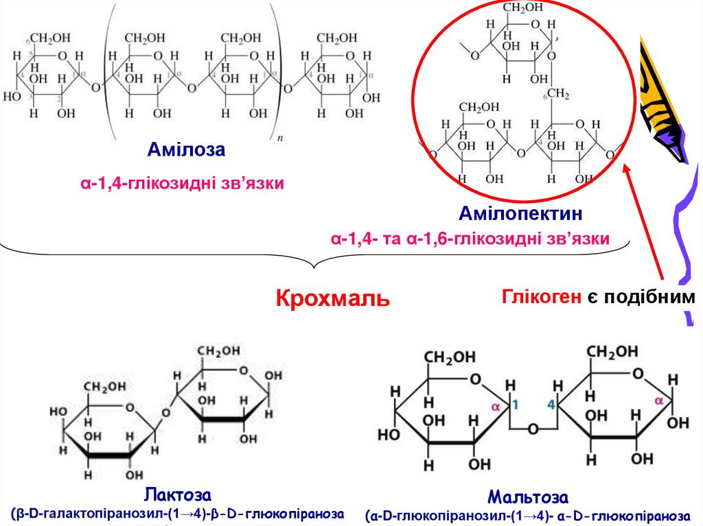 α-1,4- та α-1,6-глікозидні зв’язки