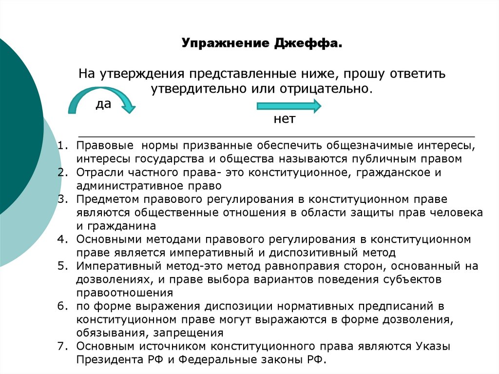Упражнение Джеффа.На утверждения представленные ниже, прошу ответить