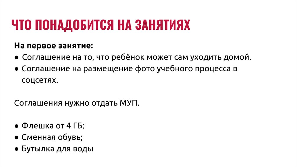 ЧТО ПОНАДОБИТСЯ НА ЗАНЯТИЯХНа первое занятие: