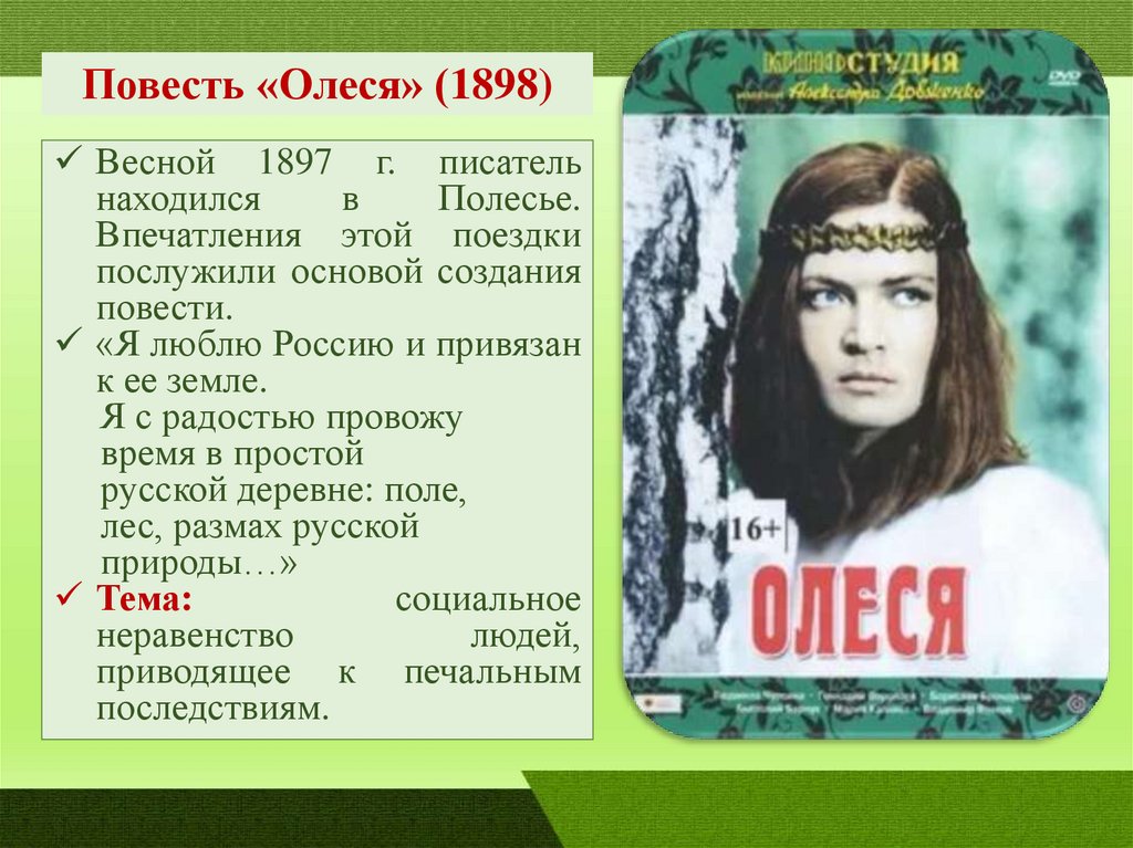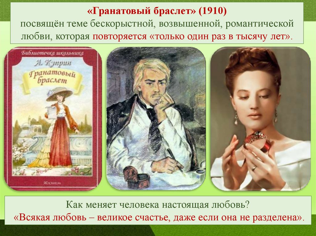 «Гранатовый браслет» (1910)посвящён теме бескорыстной, возвышенной, романтической
