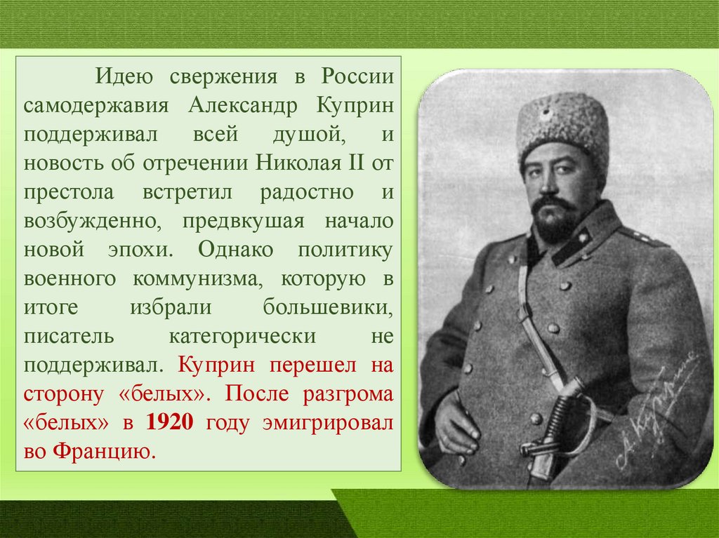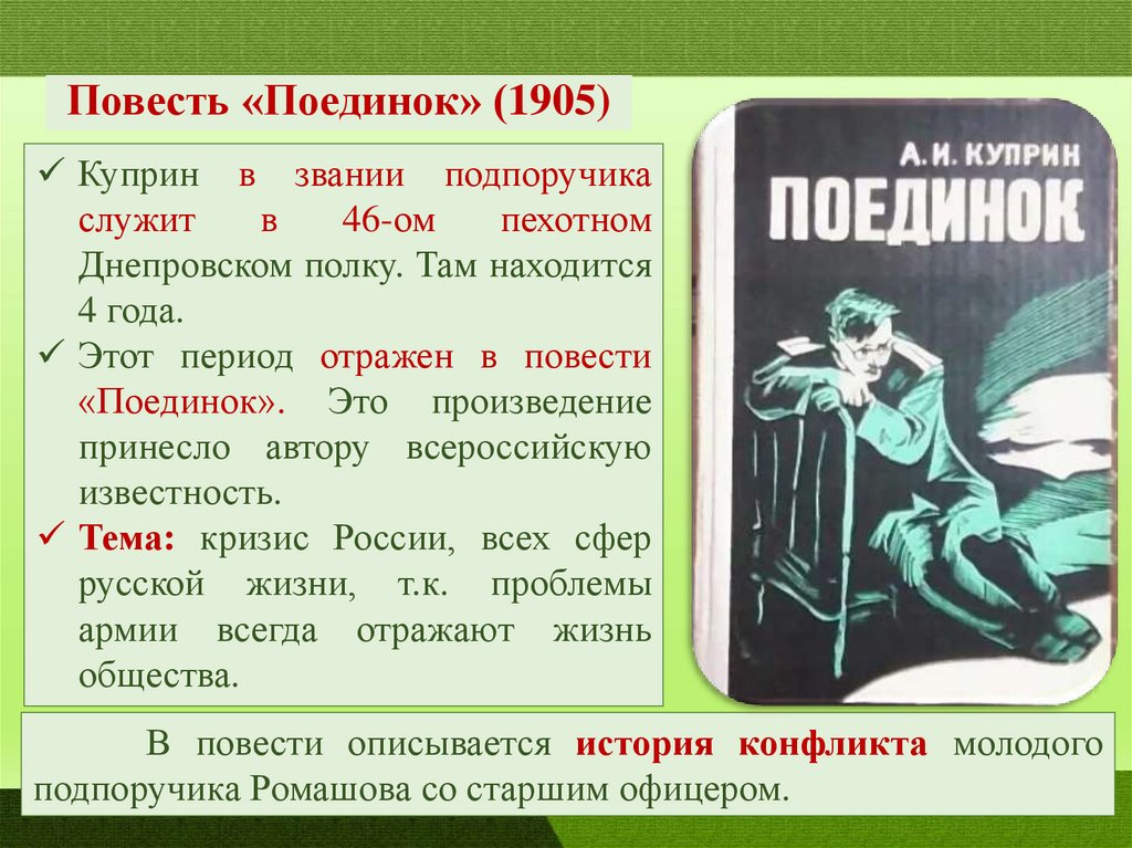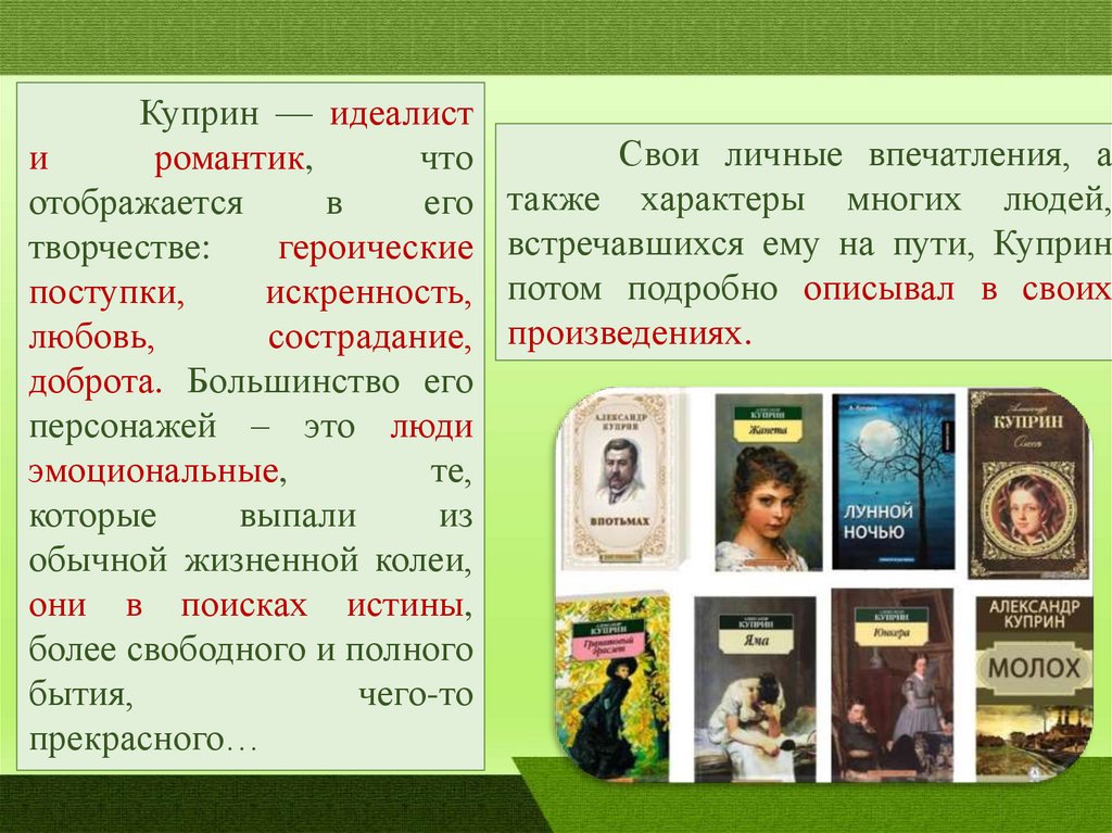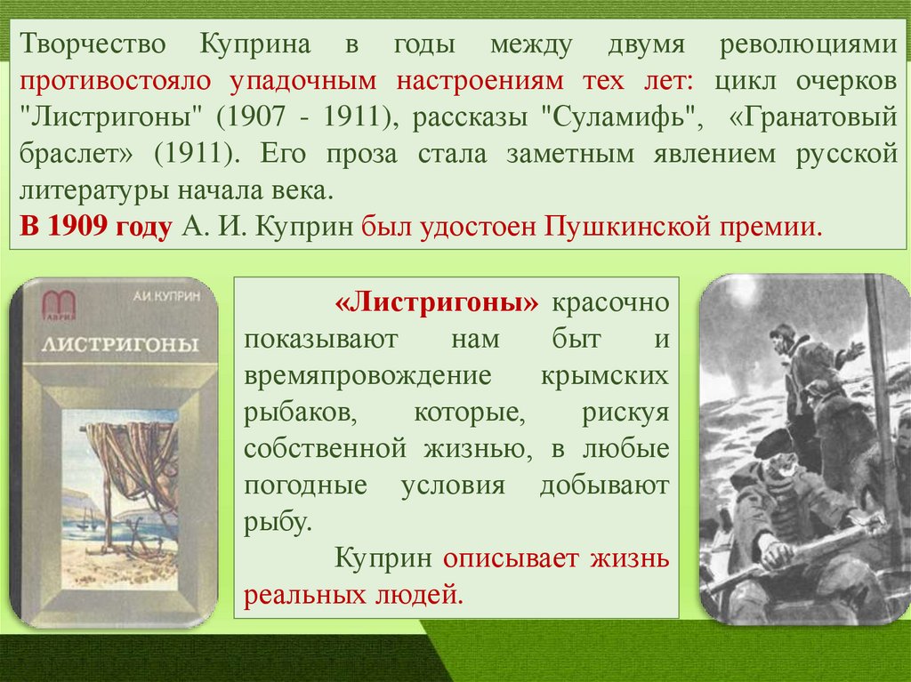 Творчество Куприна в годы между двумя революциямипротивостояло упадочным настроениям тех лет: цикл очерков