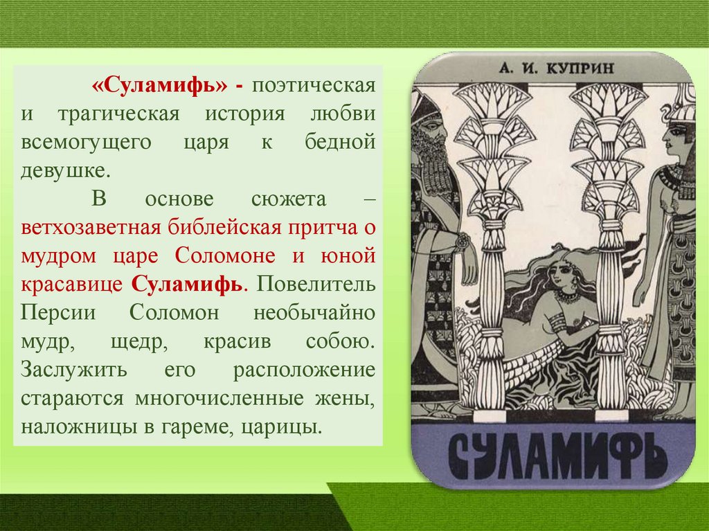 "Листригоны" (1907 - 1911), рассказы "Суламифь", «Гранатовый