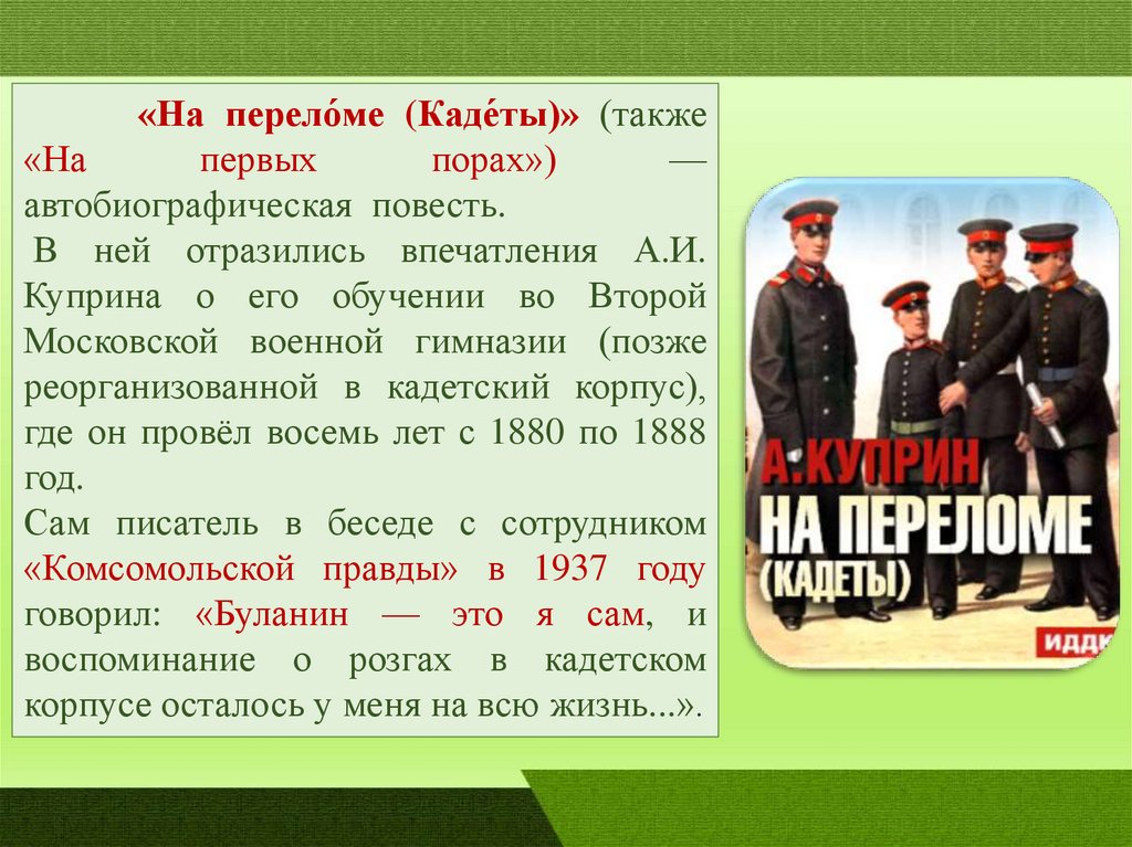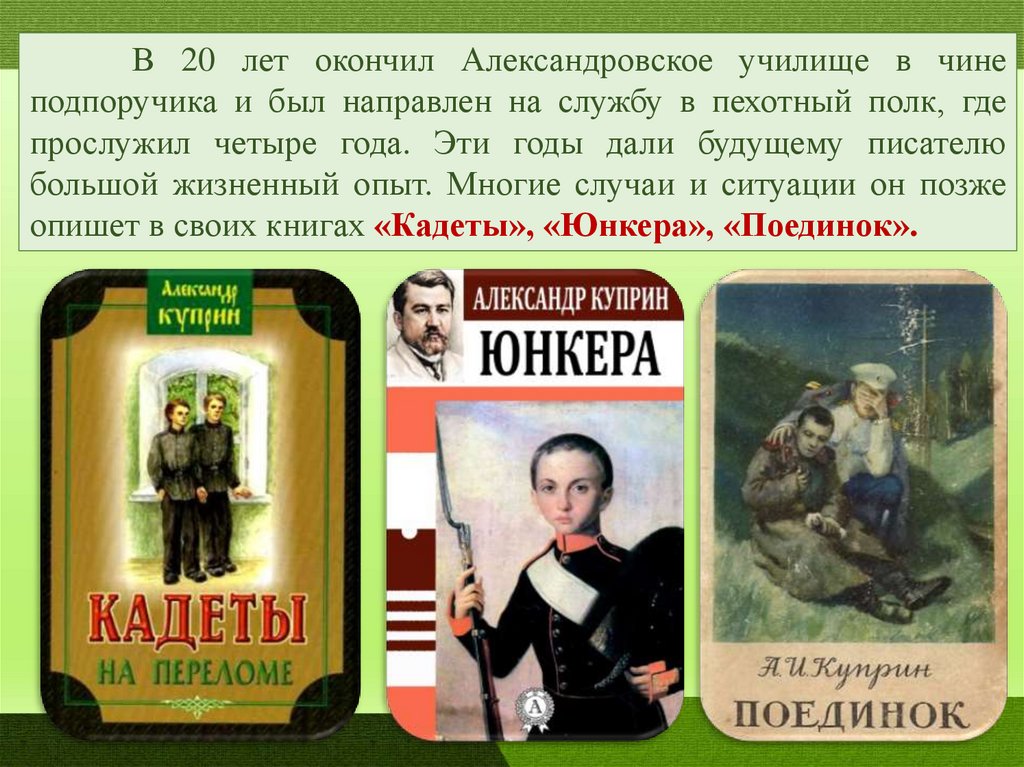 опишет в своих книгах «Кадеты», «Юнкера», «Поединок».