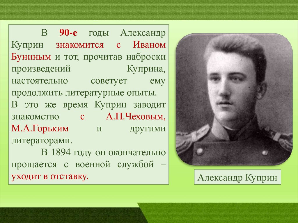 В 90-е годы АлександрКуприн знакомится с Иваном