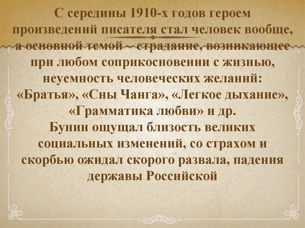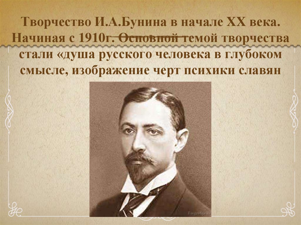 Творчество И.А.Бунина в начале XX века.Начиная с 1910г. Основной темой творчества