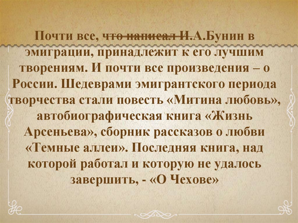 Почти все, что написал И.А.Бунин вэмиграции, принадлежит к его лучшим