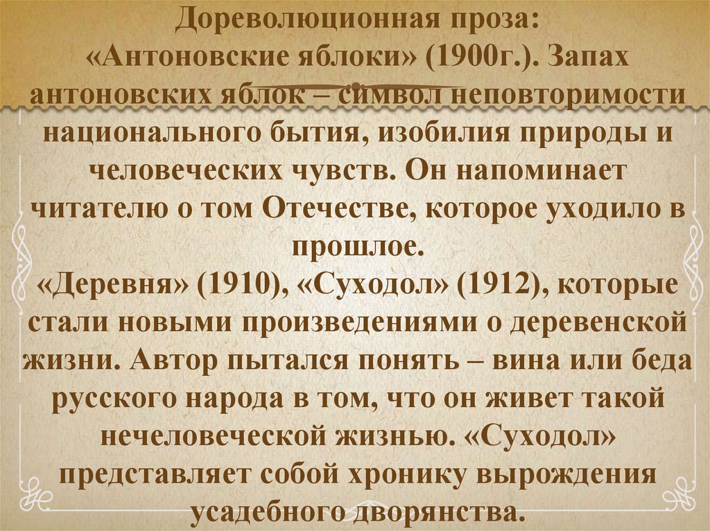 Дореволюционная проза:«Антоновские яблоки» (1900г.). Запах