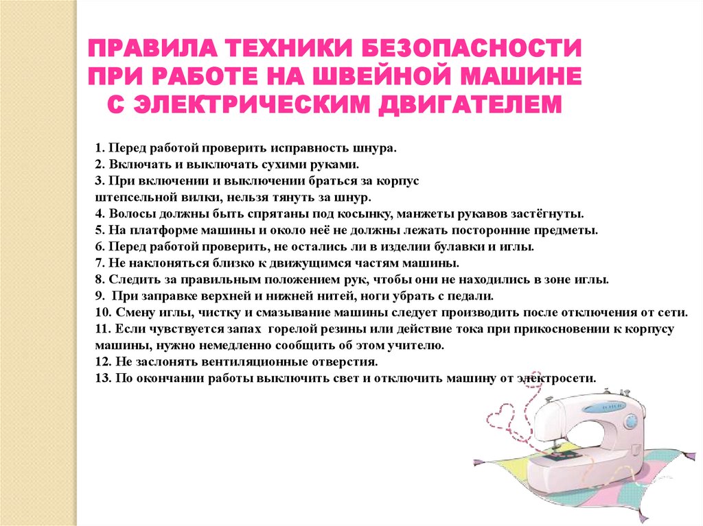 ПРАВИЛА ТЕХНИКИ БЕЗОПАСНОСТИПРИ РАБОТЕ НА ШВЕЙНОЙ МАШИНЕ