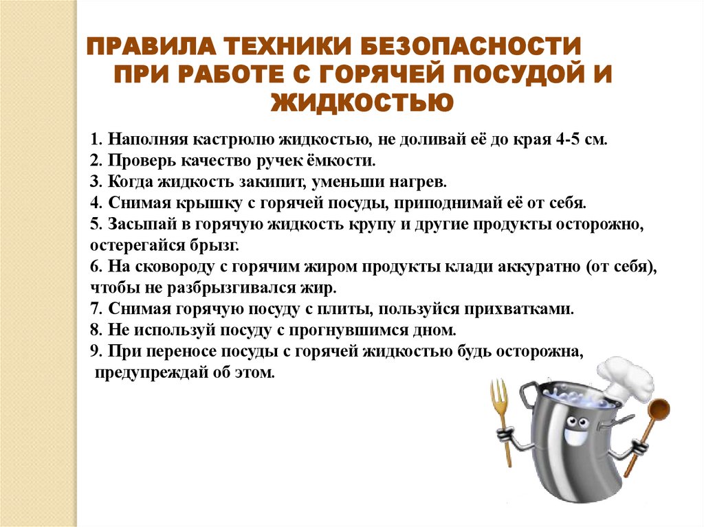 ПРАВИЛА ТЕХНИКИ БЕЗОПАСНОСТИПРИ РАБОТЕ С ГОРЯЧЕЙ ПОСУДОЙ И