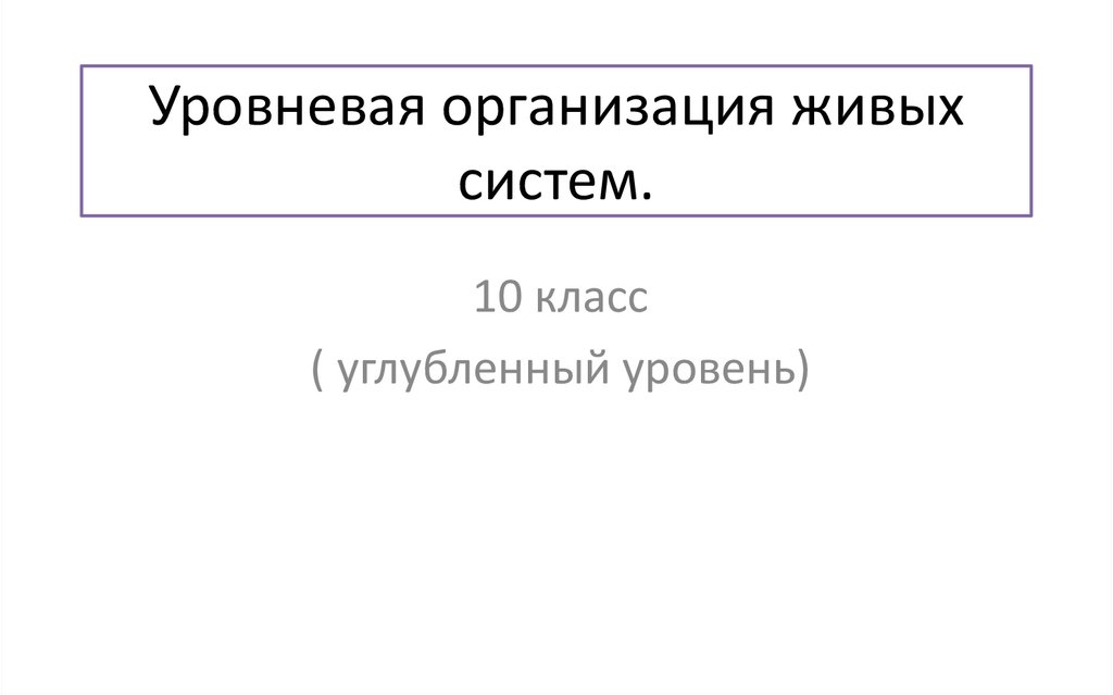 Уровневая организация живых систем. 10 класс (углубленный уровень)