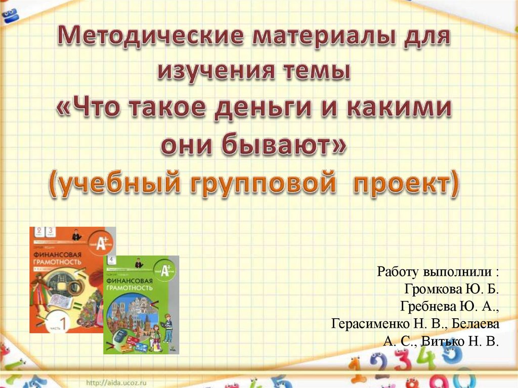 Методические материалы для изучения «Что такое деньги и какими они бывают»