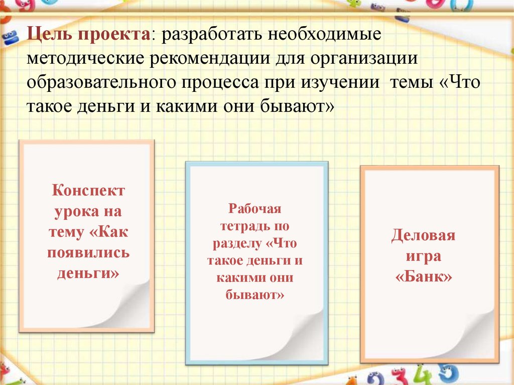 Цель проекта: разработать необходимыеметодические рекомендации для организации