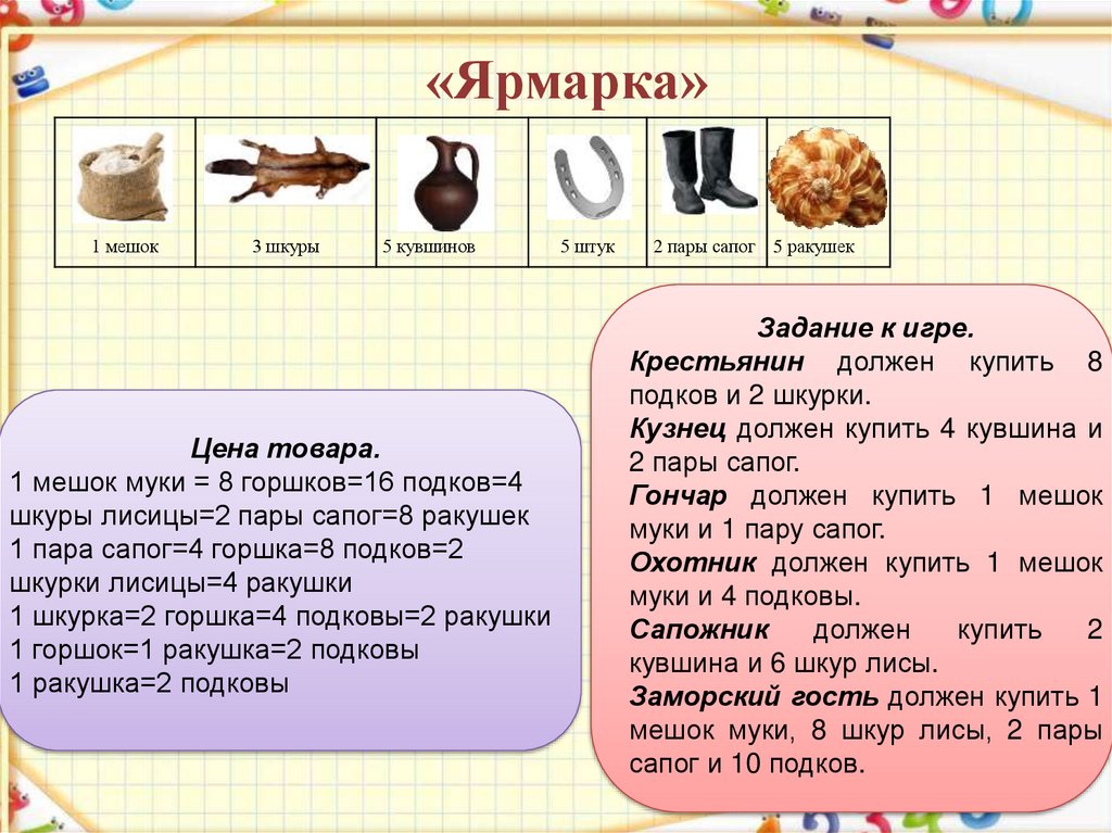 1 шкурка=2 горшка=4 подковы=2 ракушки
