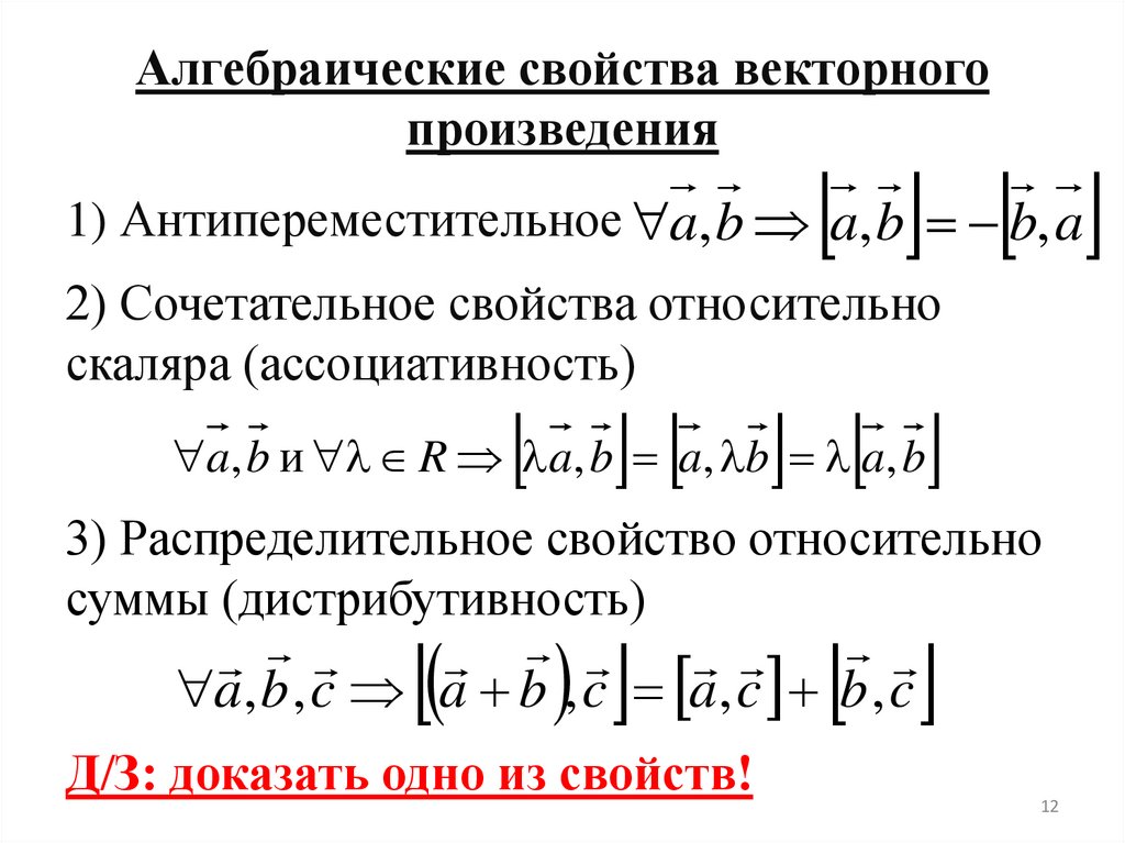 Из этих формул, в частности, следует формула для определения косинуса угла между векторами: