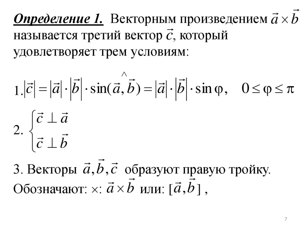1. Лекция 1. Векторы, линейные операции над векторами, скалярное, векторное, смешанное произведения векторов, условие