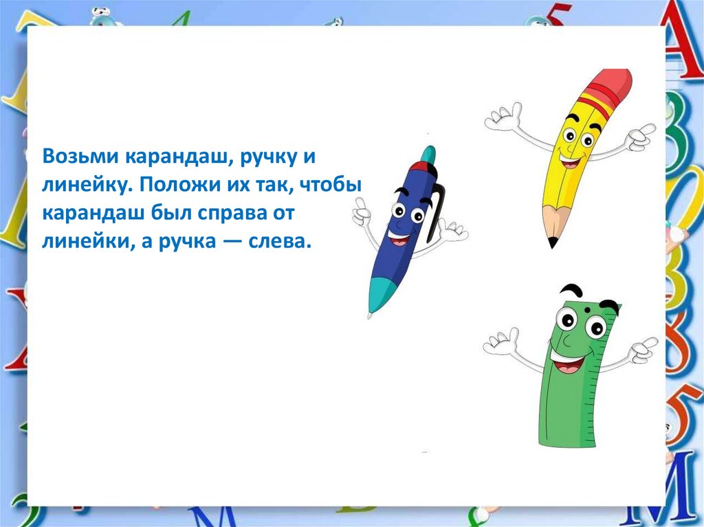 Возьми карандаш, ручку илинейку. Положи их так, чтобы