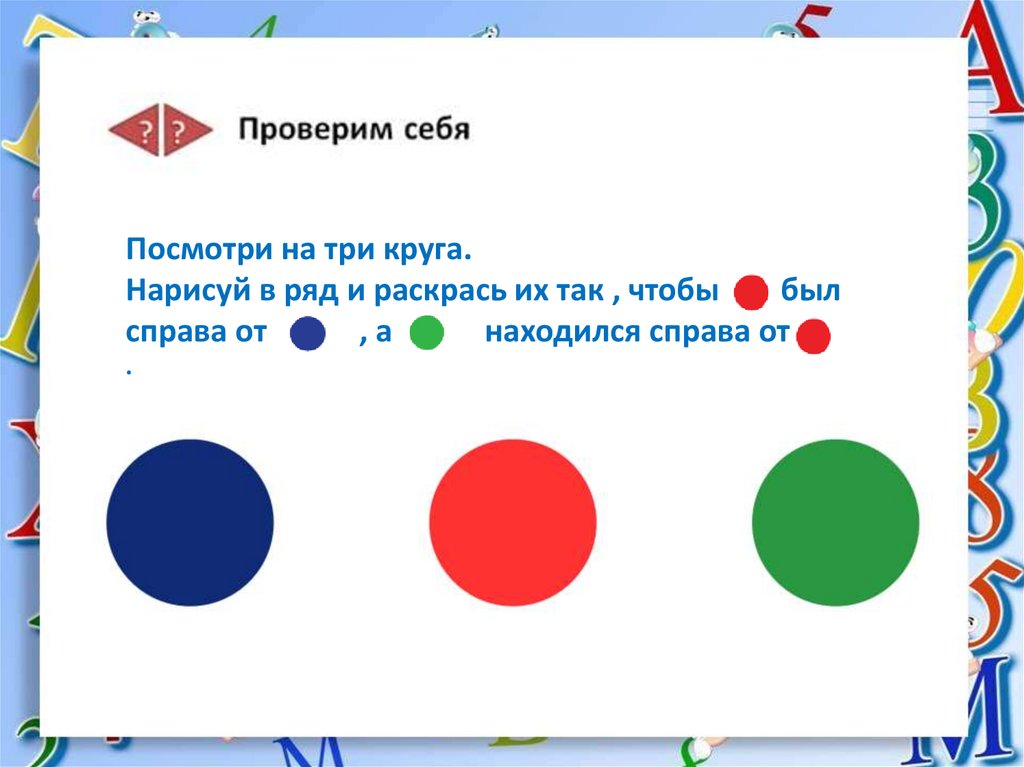 Посмотри на три круга.Нарисуй в ряд и раскрась их так , чтобы