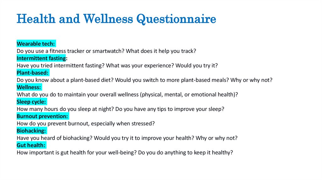 Health and Wellness QuestionnaireWearable tech: