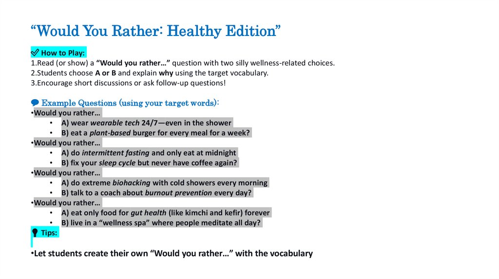 “Would You Rather: Healthy Edition”✅ How to Play: