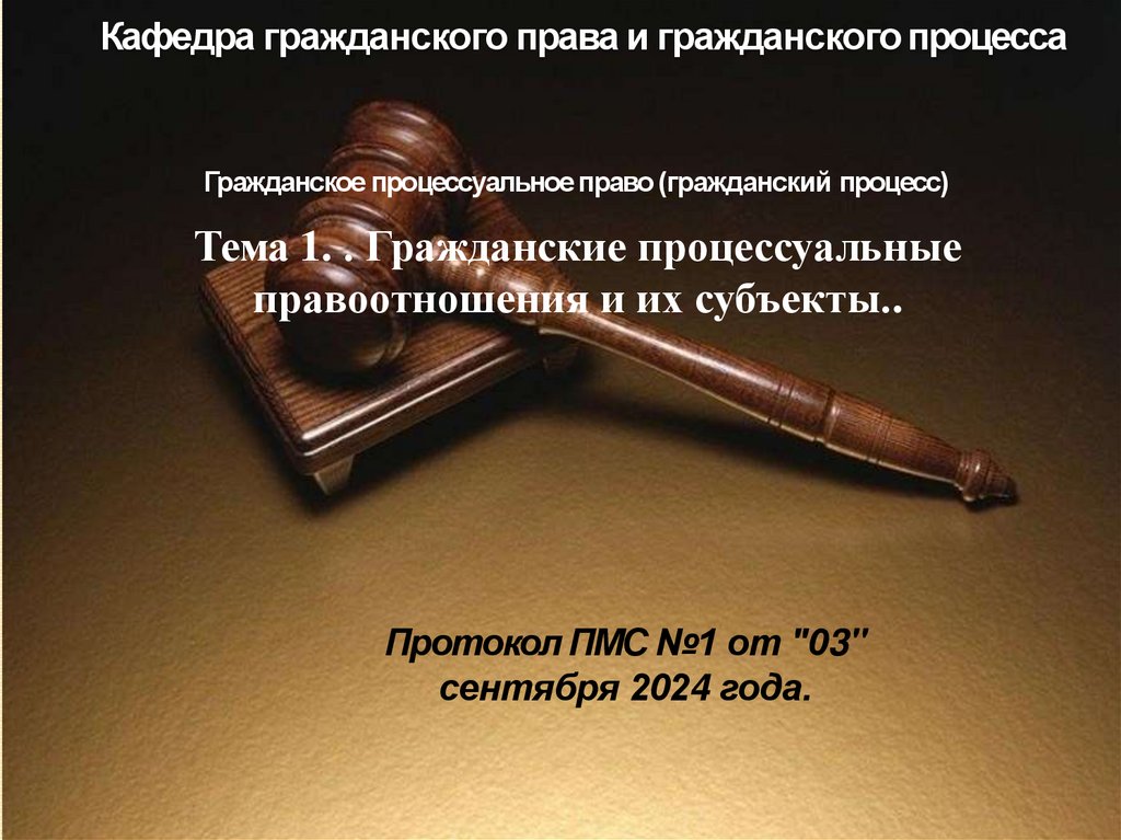 Гражданские процессуальные правоотношения и их субъекты.. Протокол ПМС №1 от "03" сентября 2024 года