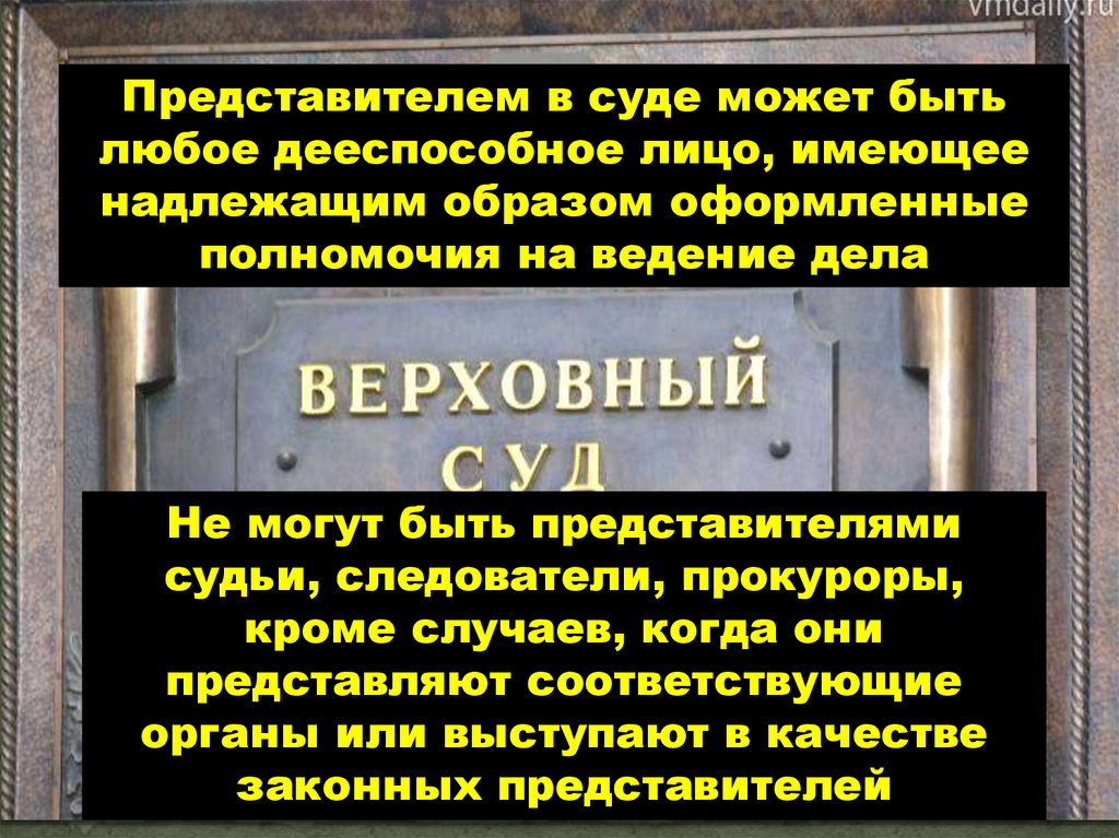 Представителем в суде может бытьлюбое дееспособное лицо, имеющее