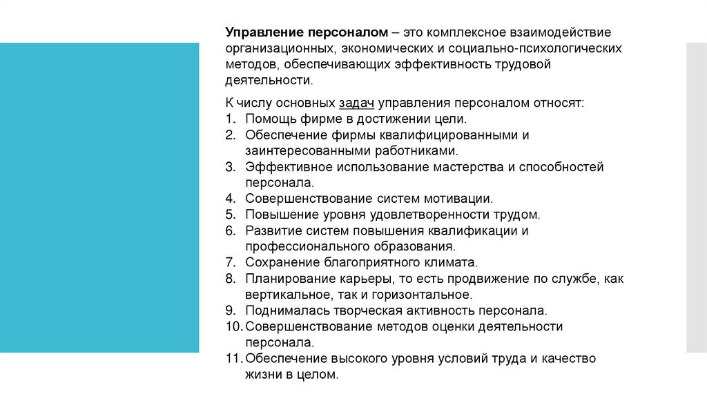 Управление персоналом – это комплексное взаимодействиеорганизационных, экономических и социально-психологических