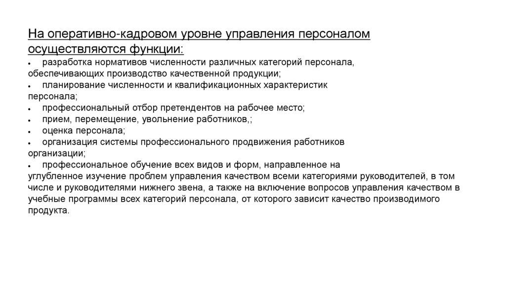 На оперативно-кадровом уровне управления персоналомосуществляются функции: