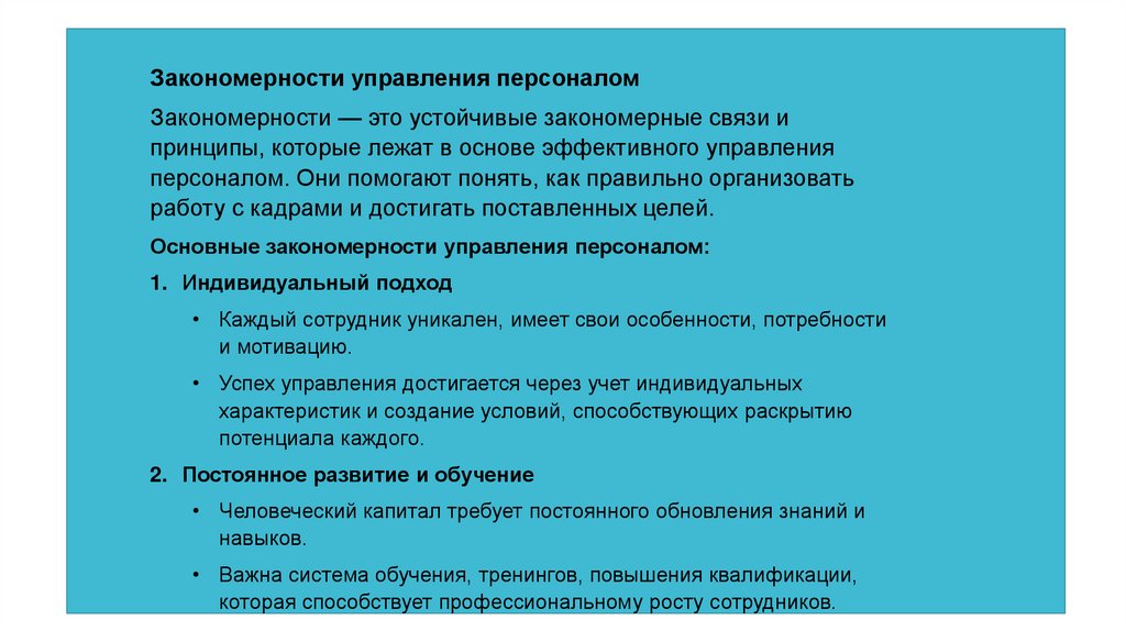 Закономерности управления персоналомЗакономерности — это устойчивые закономерные связи и