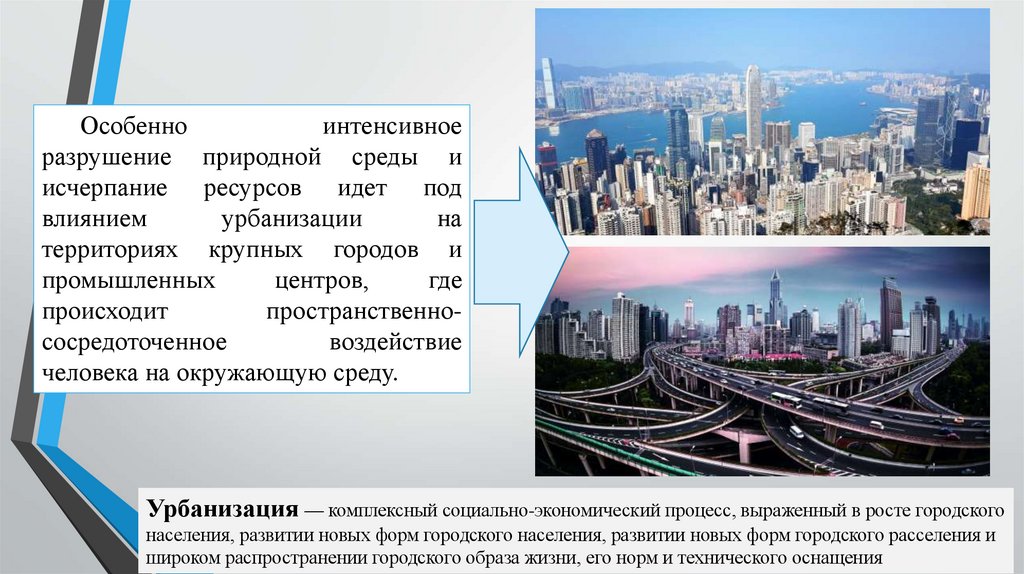 Урбанизация — комплексный социально-экономический процесс, выраженный в росте городского