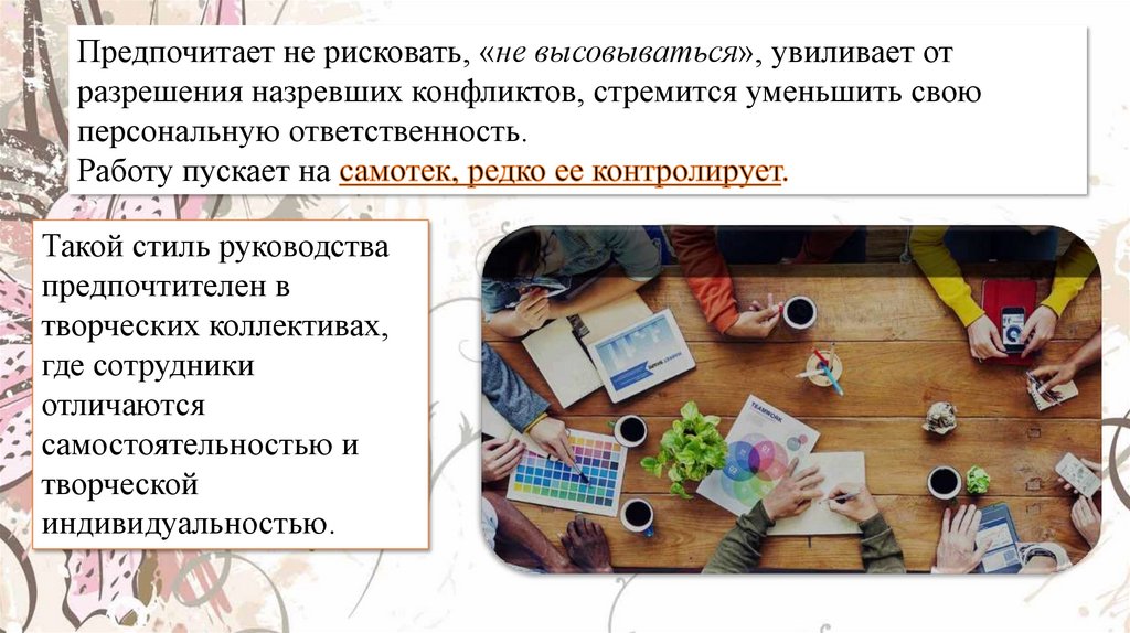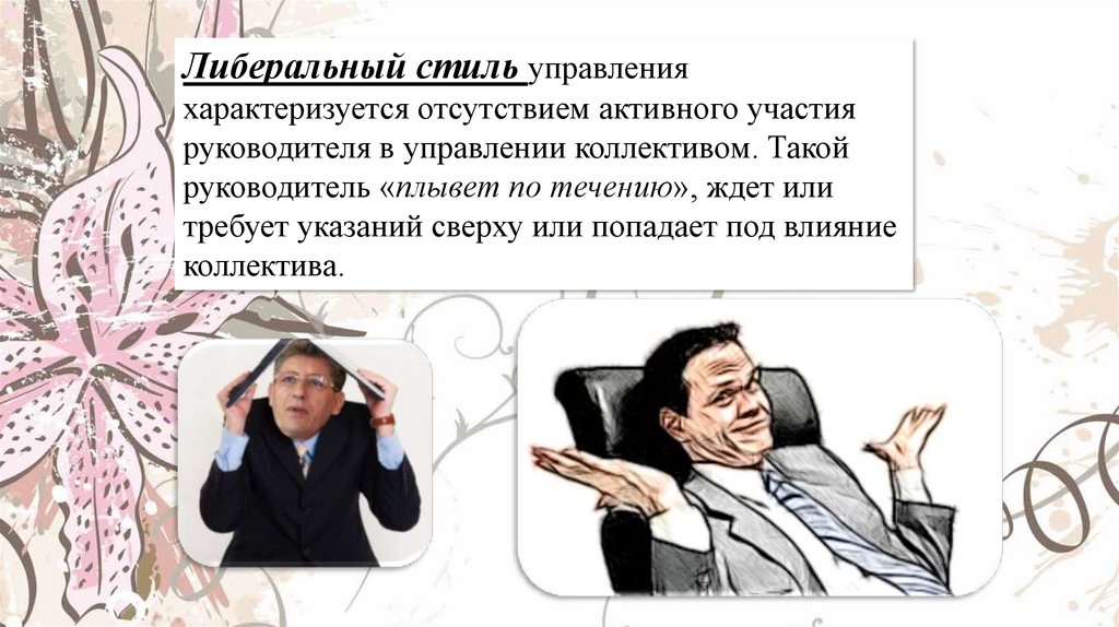 Либеральный стиль управленияхарактеризуется отсутствием активного участия