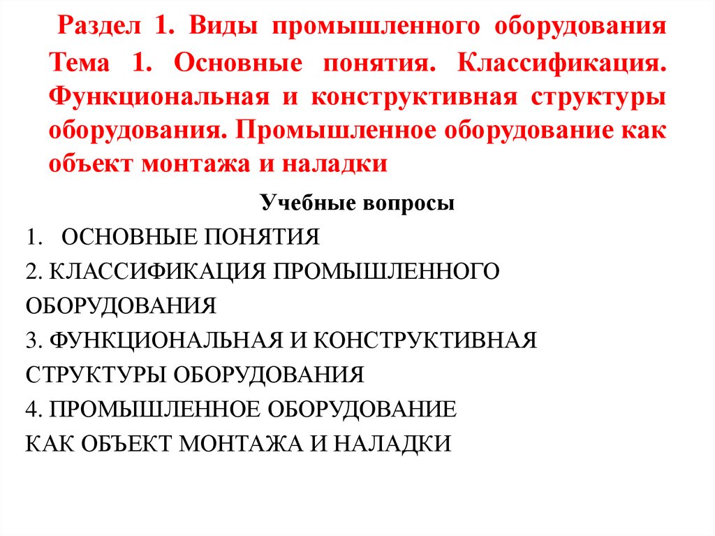 1. Раздел 1. Виды промышленного оборудования Тема 1. Основные понятия. Классификация. Функциональная и конструктивная структуры