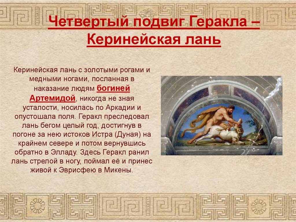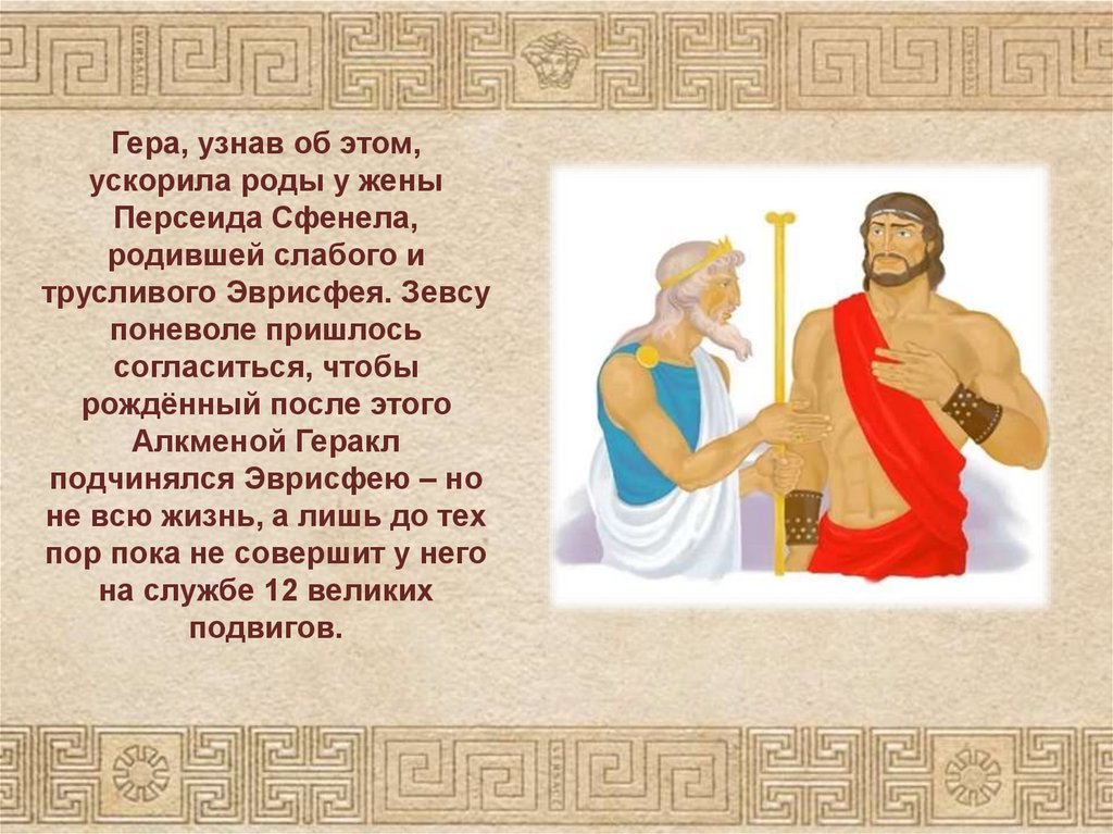 земли и привёл в Микены. Трусливый Эврисфей при одном взгляде на ужасную