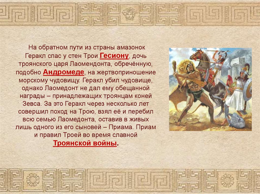 На обратном пути из страны амазонокГеракл спас у стен Трои Гесиону, дочь
