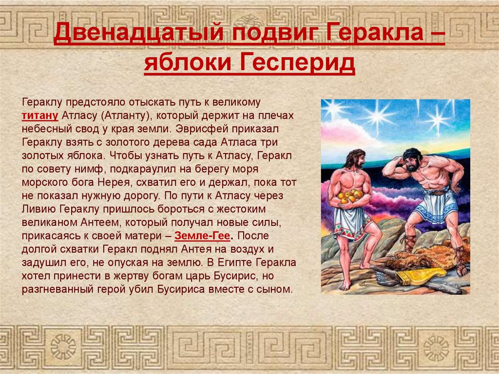 Двенадцатый подвиг Геракла –яблоки Гесперид