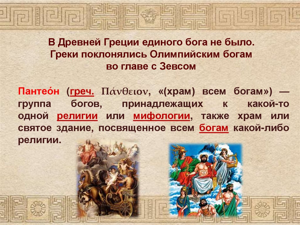 В Древней Греции единого бога не было.Греки поклонялись Олимпийским богам