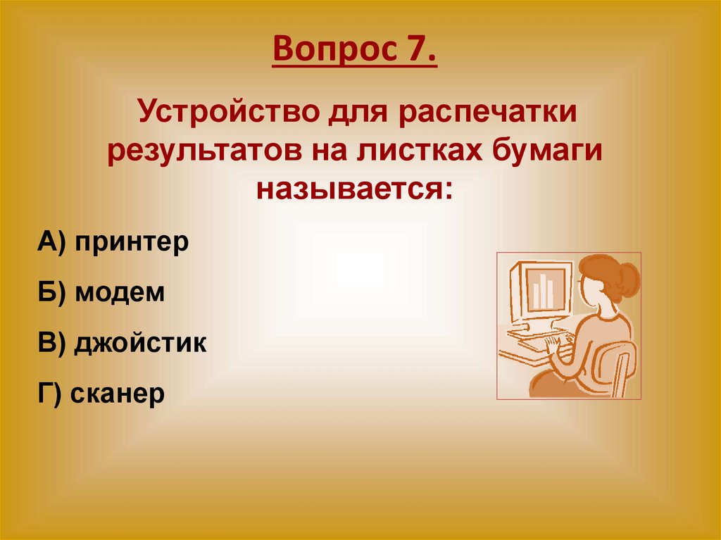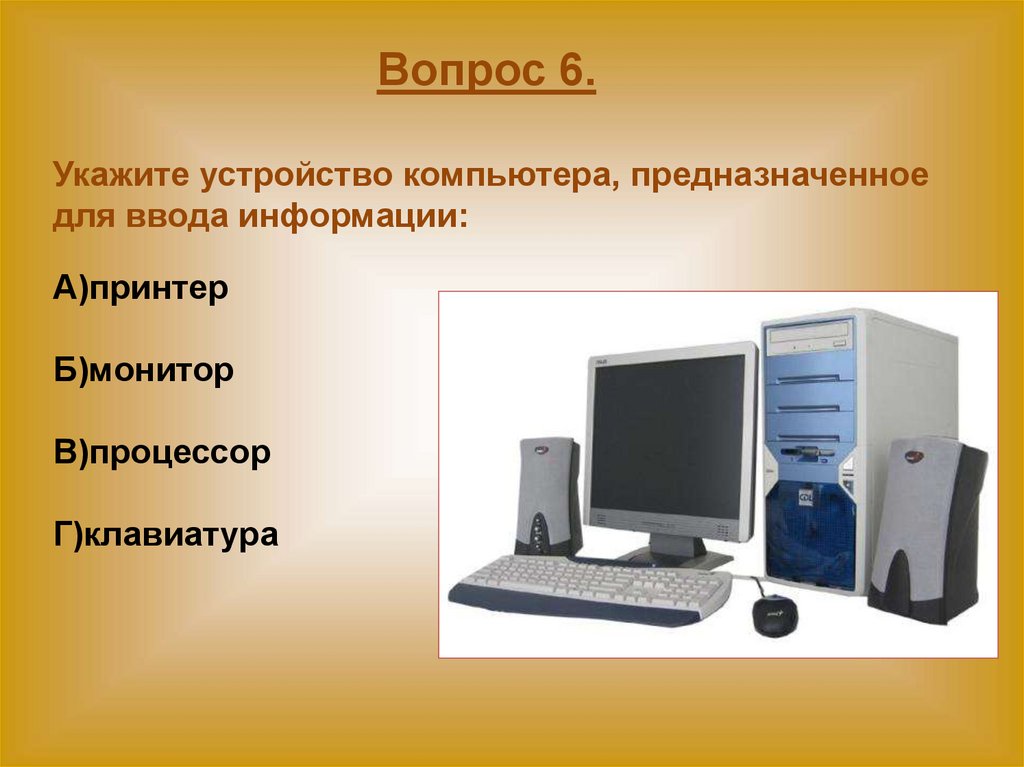 Вопрос 6.Укажите устройство компьютера, предназначенное