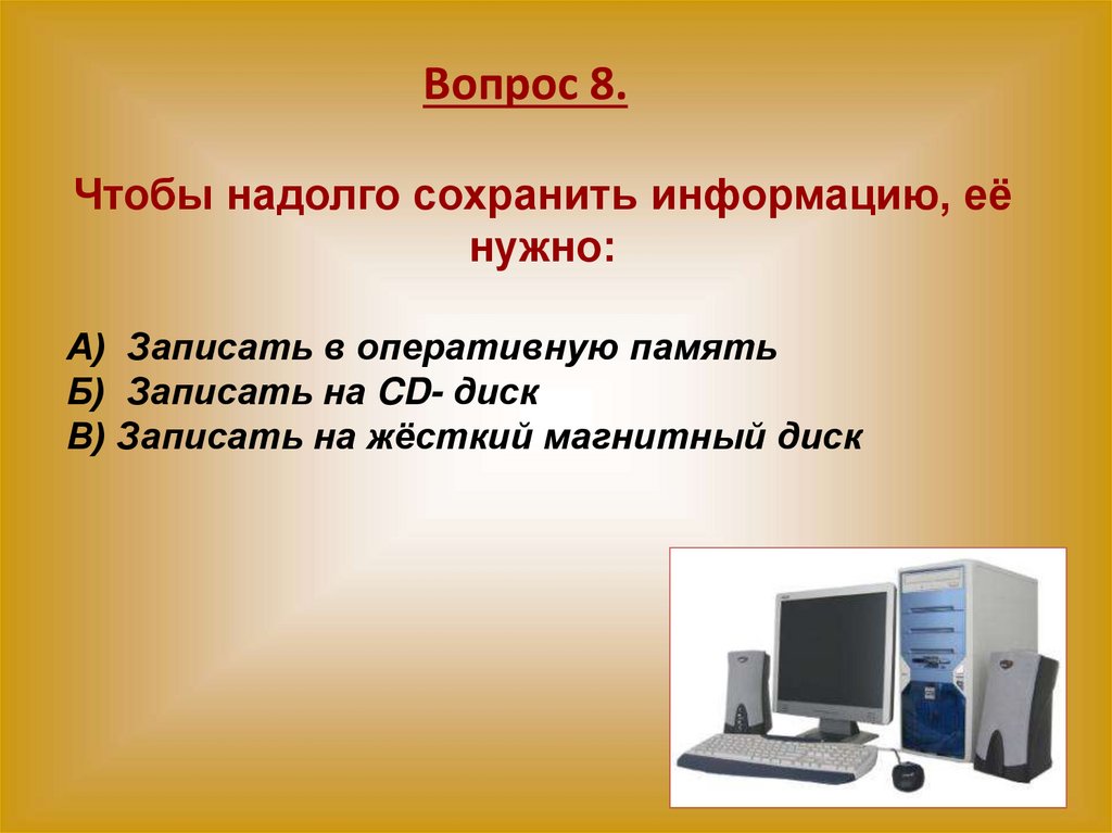 Вопрос 8.Чтобы надолго сохранить информацию, её