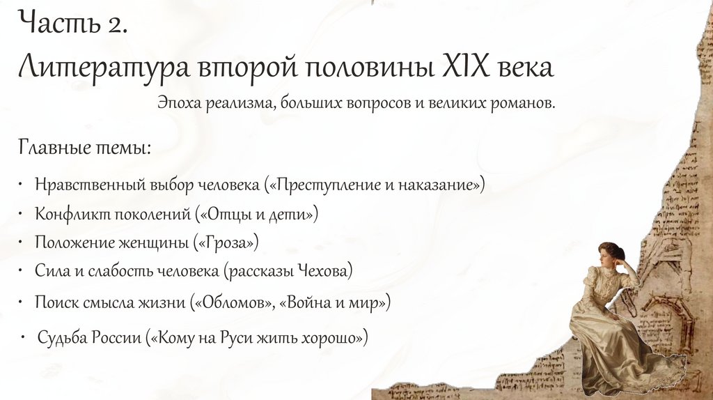 • Подробно изучить вторую половину XIX века - золотой век русской литературы.