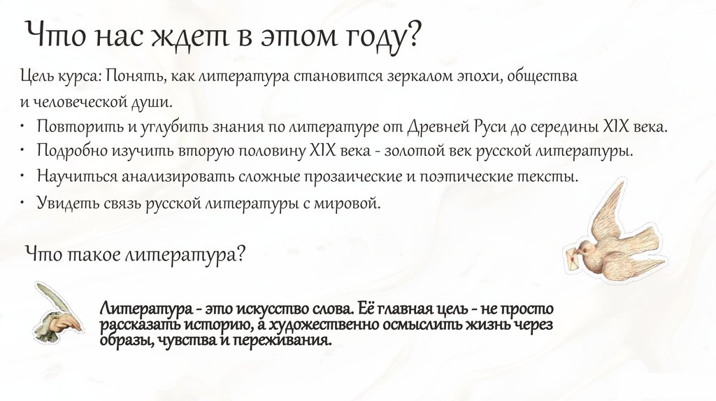 Что нас ждет в этом году?Цель курса: Понять, как литература становится зеркалом эпохи, общества
